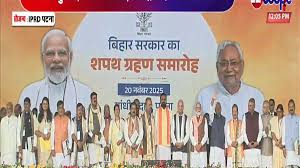 बिहार विधानसभा चुनाव 2025 में एनडीए की प्रचंड जीत के बाद मुख्यमंत्री नीतीश कुमार ने आज 20 नवंबर 2025 को बिहार के मुख्यमंत्री के रूप में रिकॉर्ड दसवीं बार शपथ लेकर भारतीय राजनीति में एक नया इतिहास रच दिया है। पटना के ऐतिहासिक गांधी मैदान में आयोजित इस भव्य समारोह में देश के प्रधानमंत्री और कई केंद्रीय मंत्रियों की उपस्थिति रही। नीतीश कुमार के साथ सम्राट चौधरी और विजय कुमार सिन्हा ने उपमुख्यमंत्री के रूप में शपथ ली। कुल 26 नेताओं ने मंत्री पद की शपथ ली है।